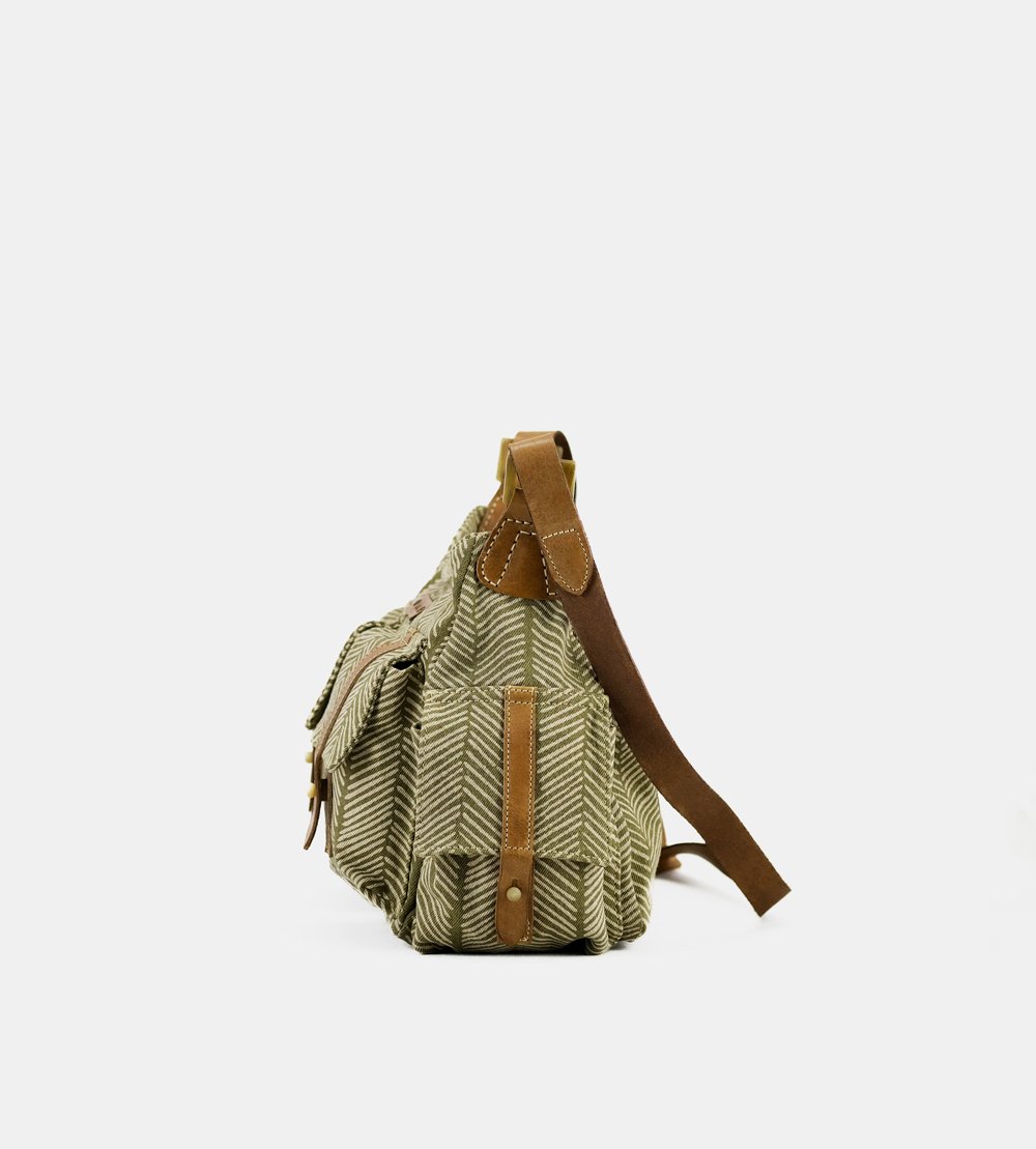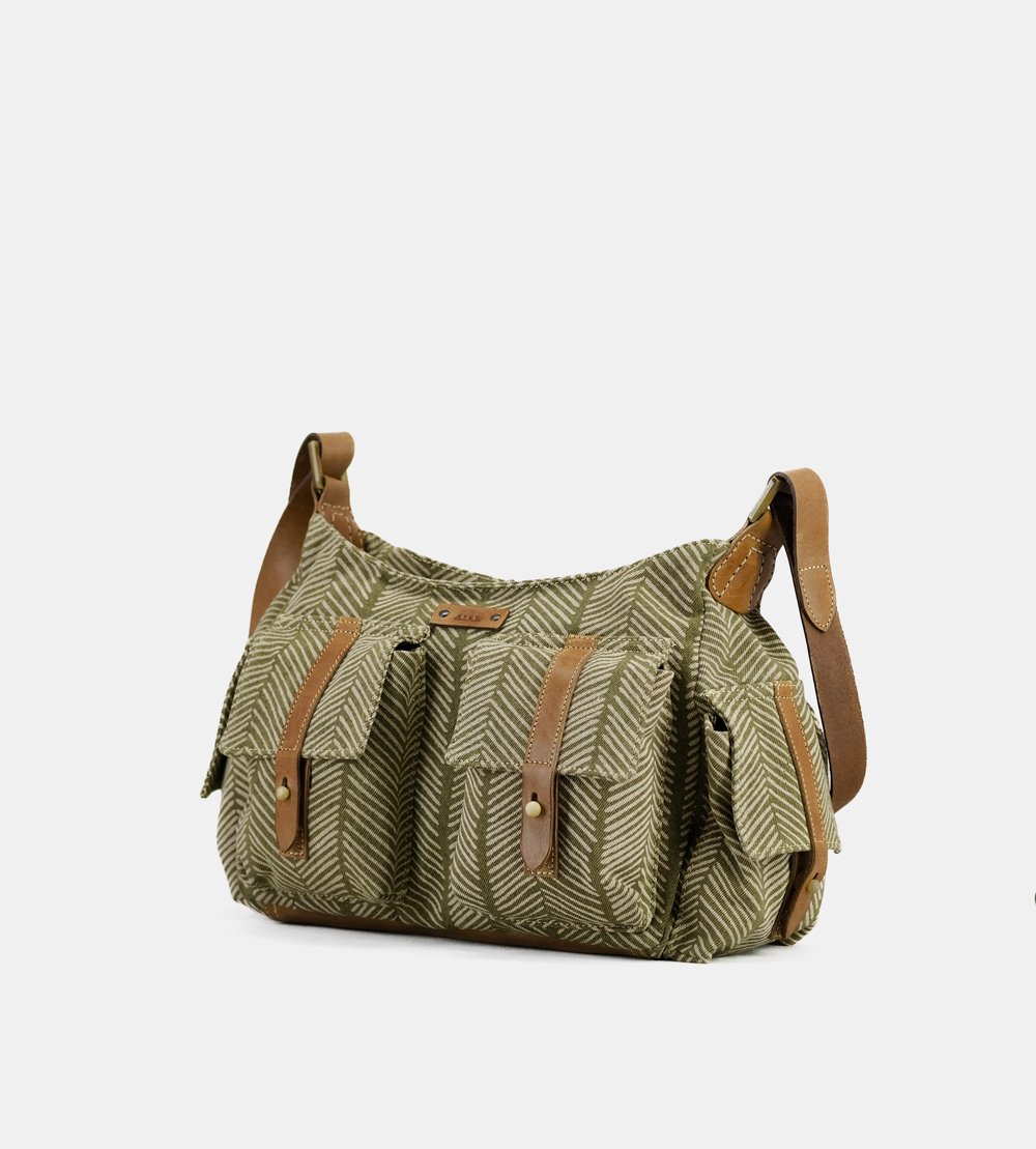 Our most safari looking and multifunctional bag made with a double twisted and handprinted canvas, and vegetable tanned Zebu cow leather. Busy is our most feminine utility bag, with all exterior pockets helping you have a more organised travel experience.