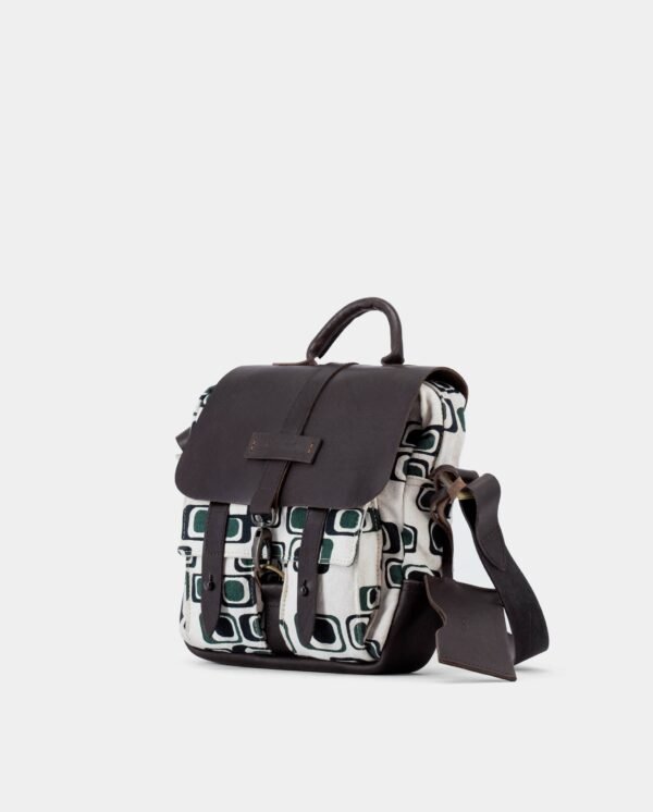 A practical traveler’s bag with side pockets and leather shoulder belt for adventurous and many long trips. Made with double twisted natural dyed canvas and vegetable tanned Zebu leather.