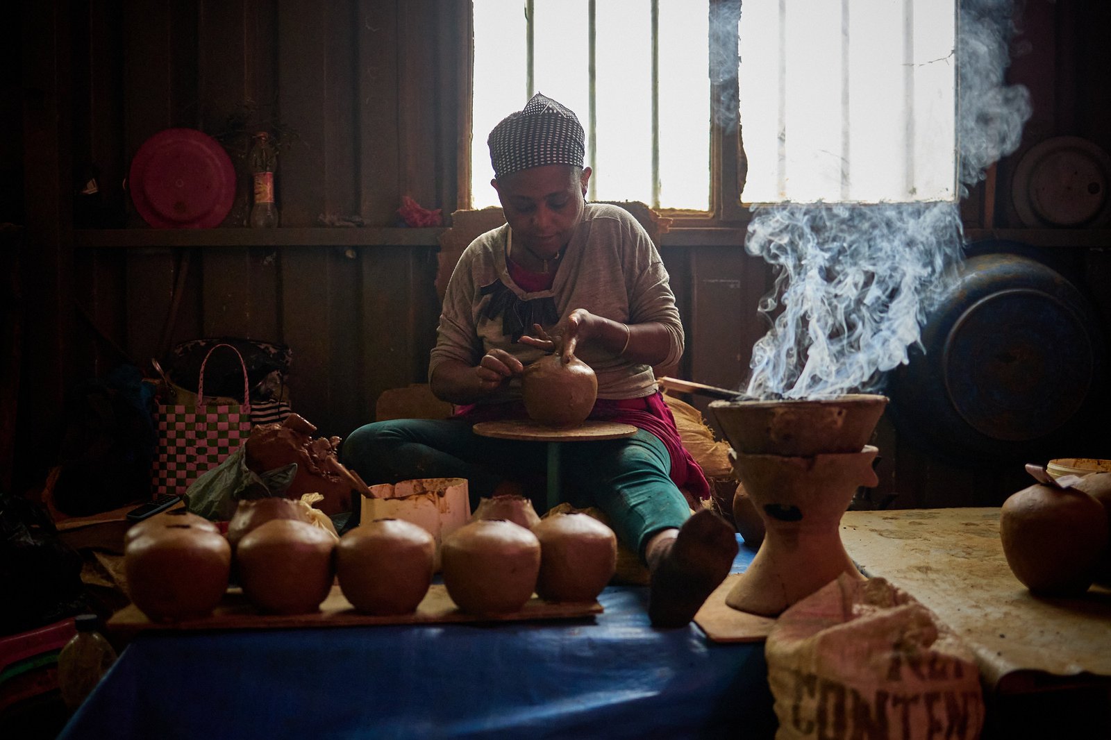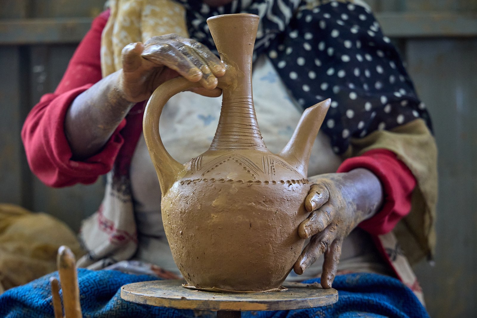 This article stays close to making. Ayzoh! photographers worked at Ensira Pottery Center in Addis Ababa, a women’s cooperative where makers produce household pottery, including coffee pots. The images follow the full chain, from raw clay to finished vessel. Hands lead every step. Time leads the rest.