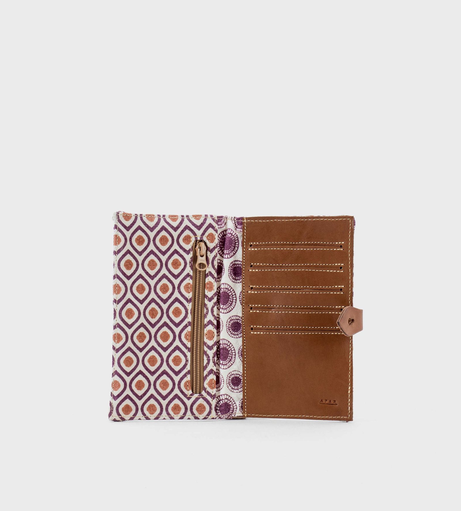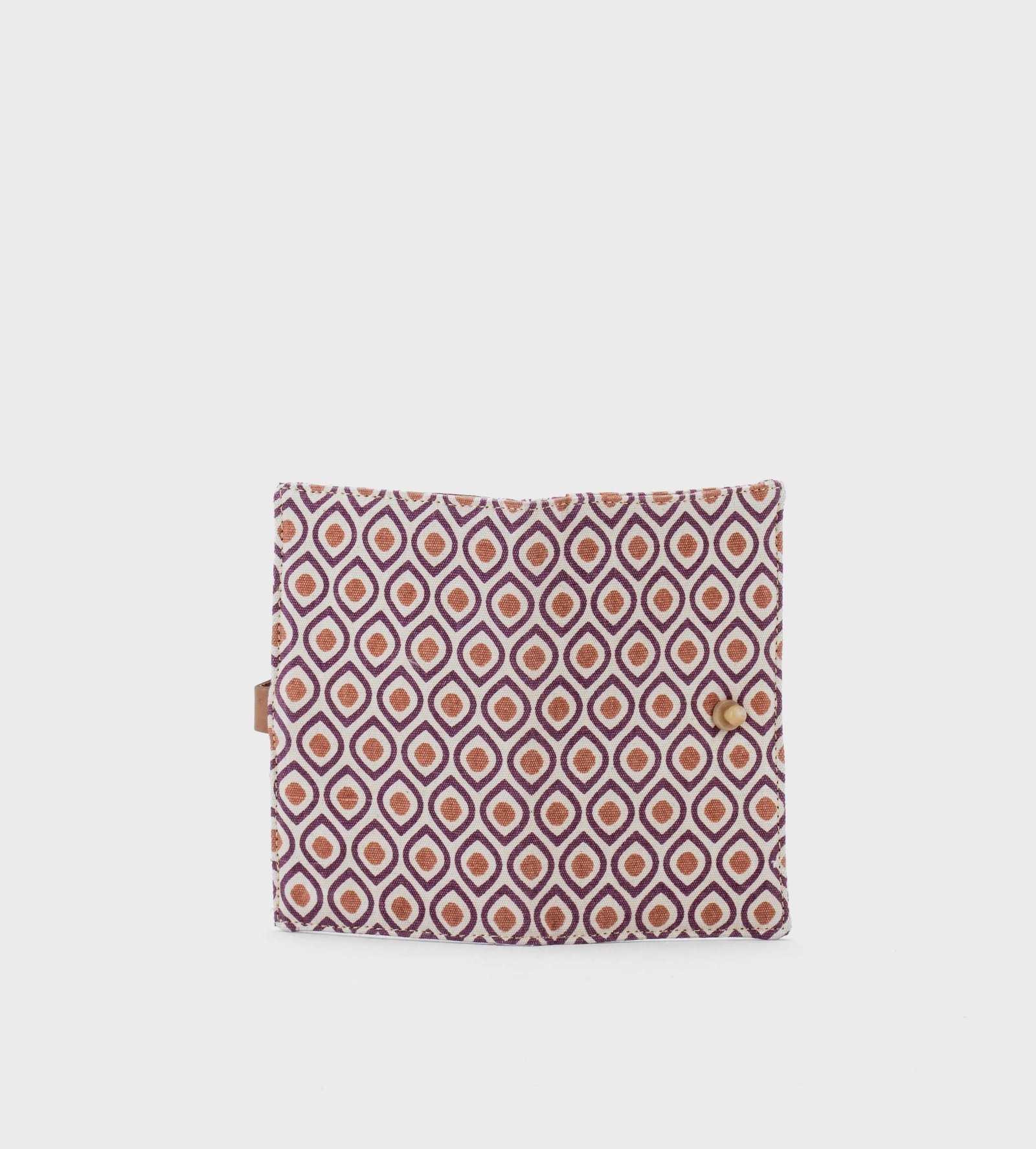 A smart organiser to have at hand what you need to travel. Made with natural dyed canvas and printed by hand with traditional wooden screens. Inside there are many compartments perfect for storing credit cards and a zippered pocket for coins.