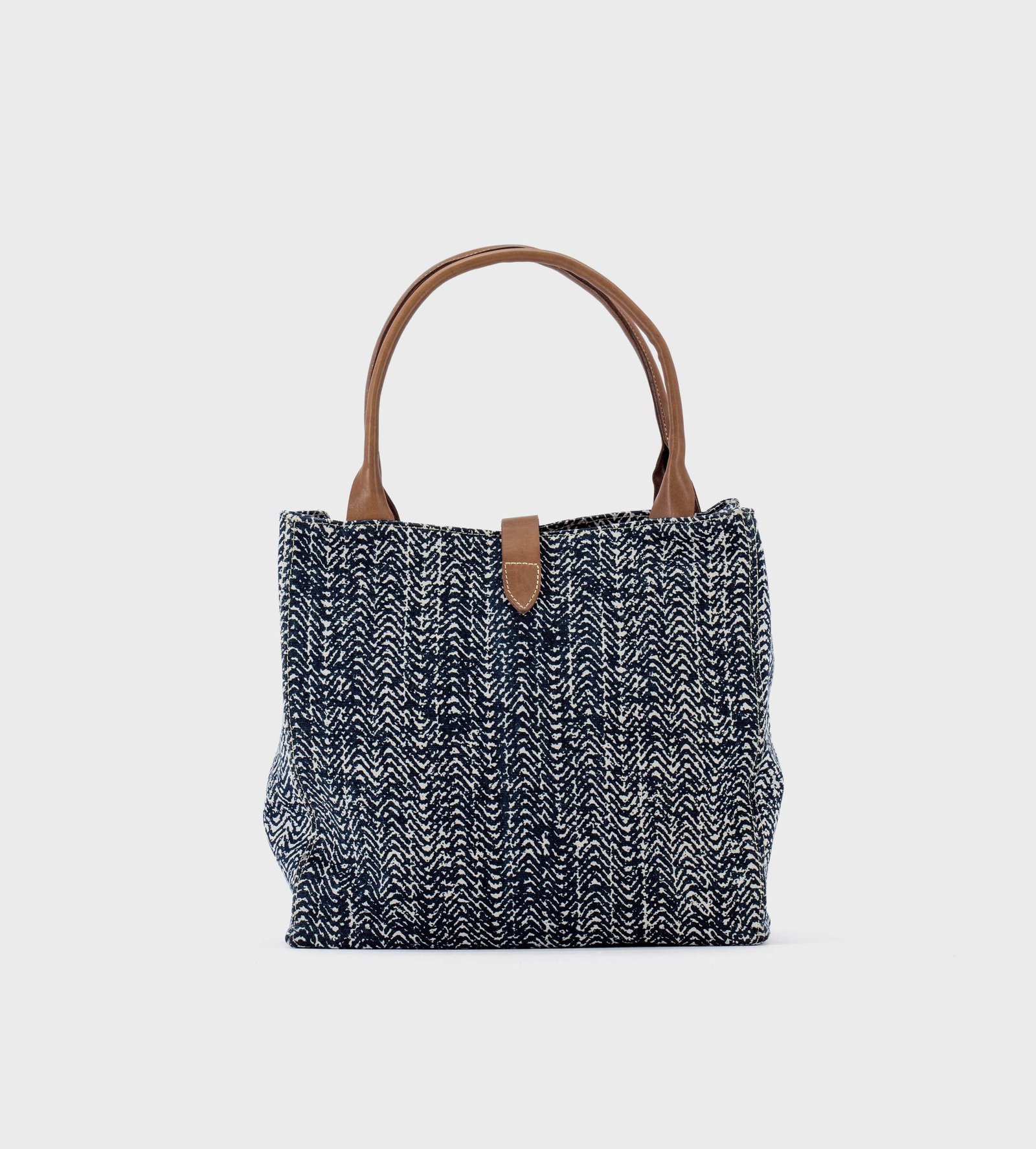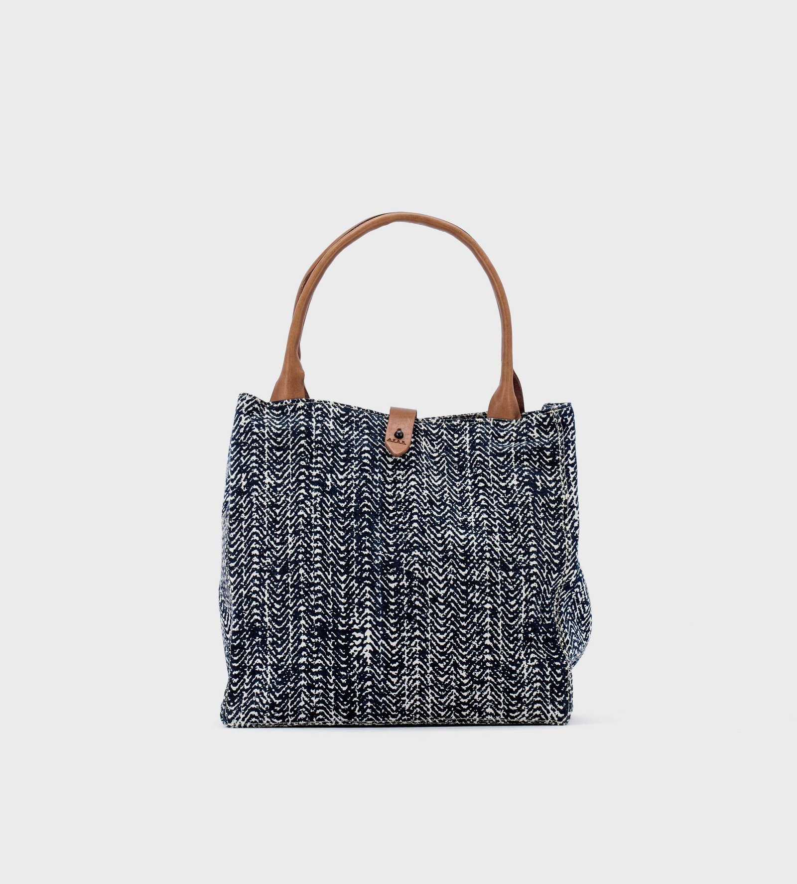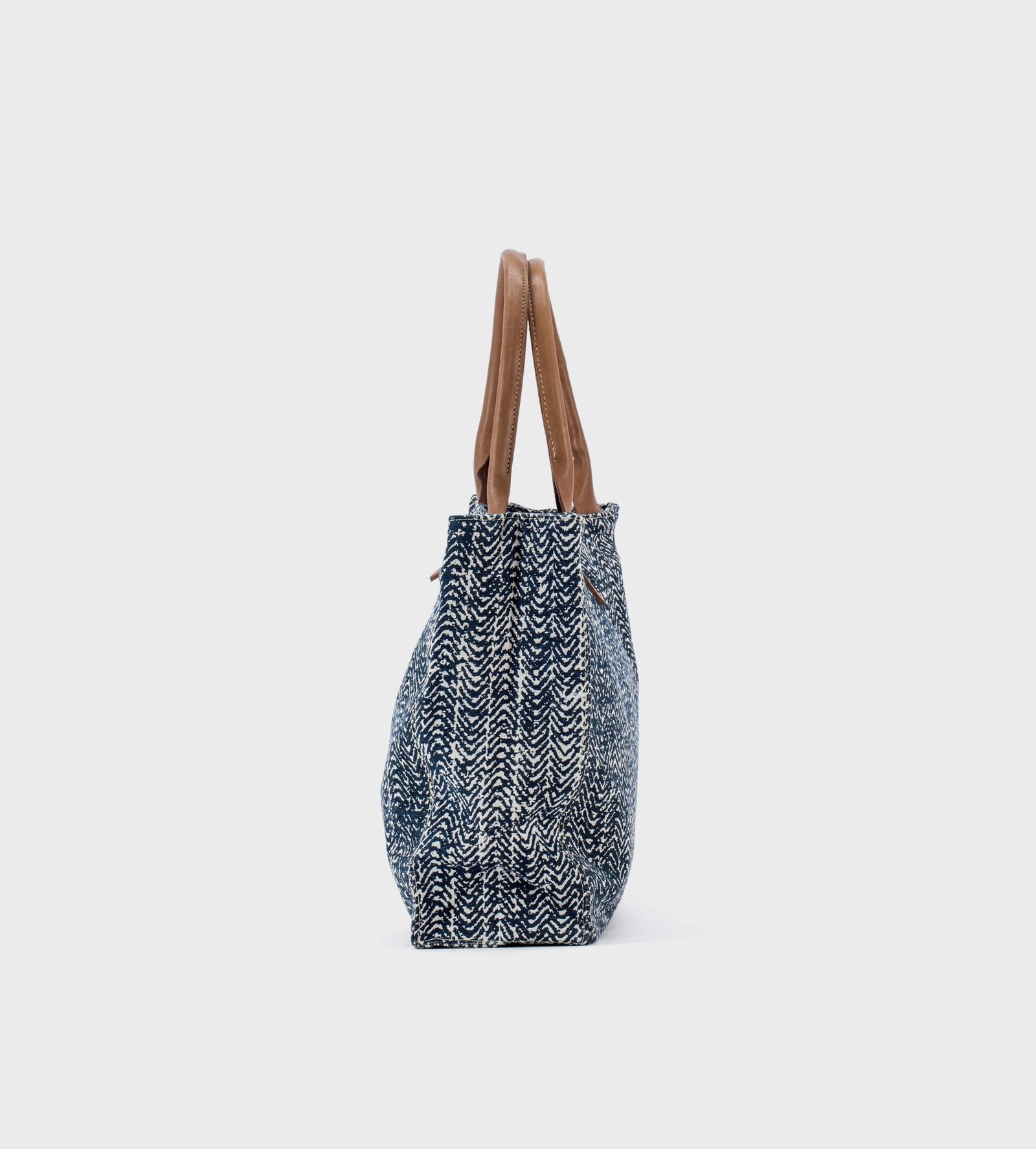 Simple, practical and eclectic, this open bag will follow you anywhere. Made with 4 ply cotton canvas handprinted using water based colours and wooden frames and vegetable tanned Zebu leather.