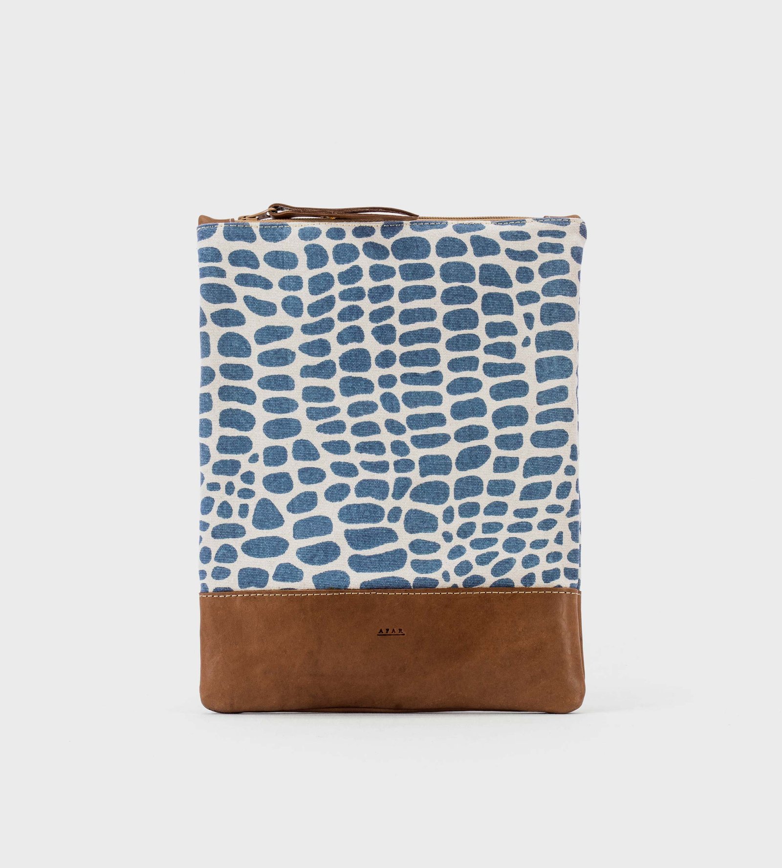 A sack to protect your tablet from any impact happening inside your bag. Made with vegetable tanned leather and natural dyed canvas printed by hand with traditional wooden screens.