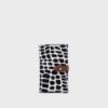 Iris Wallet is a compact travel organizer in Black Tweed canvas with leather and horn details. Made from naturally dyed, hand-printed canvas, it includes multiple card slots and a zippered coin pocket for the small things you want close at hand.