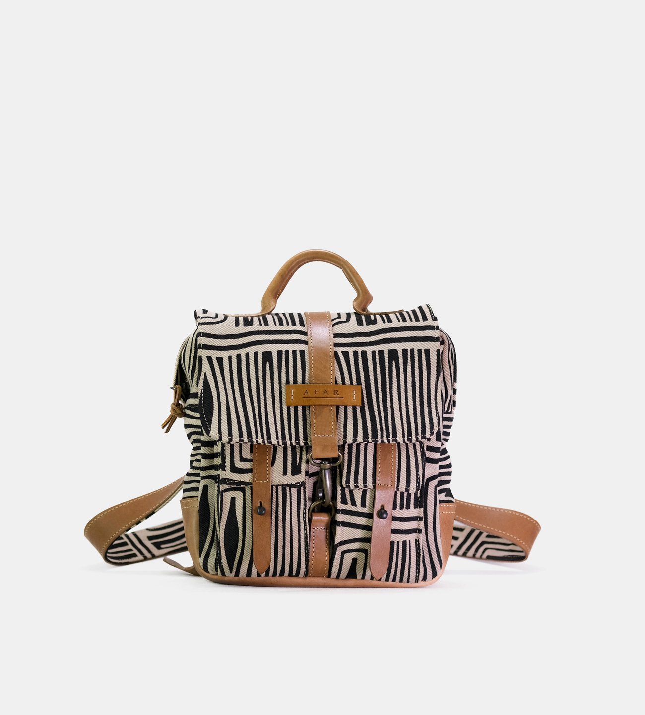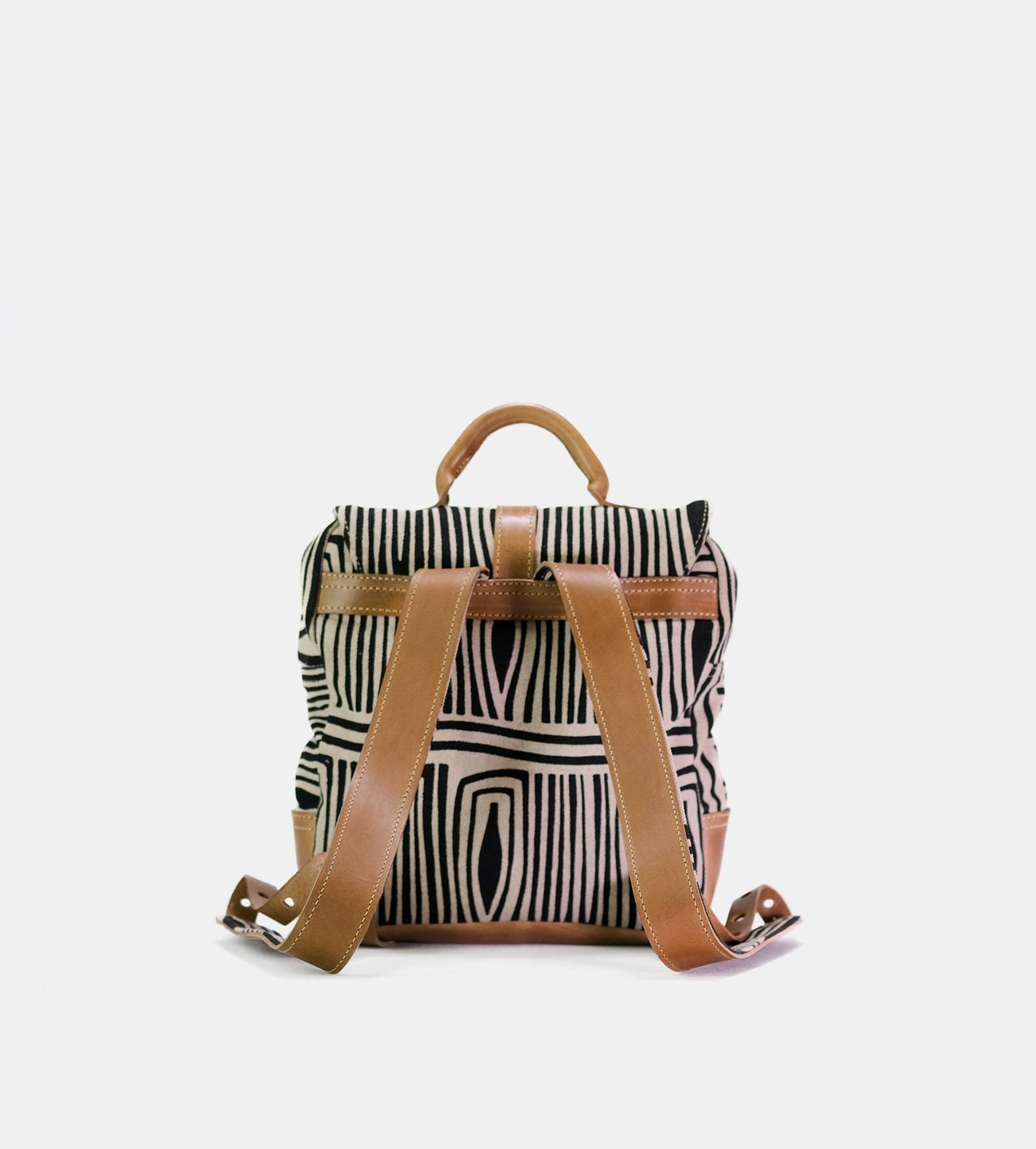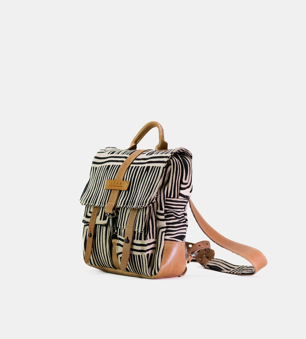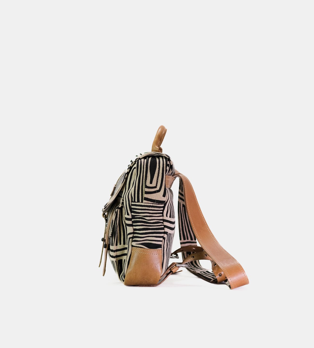 Compact but smartly designed, this multi-pocket backpack is made with double twisted handprinted canvas dyed with soil or plants and vegetable tanned leather.